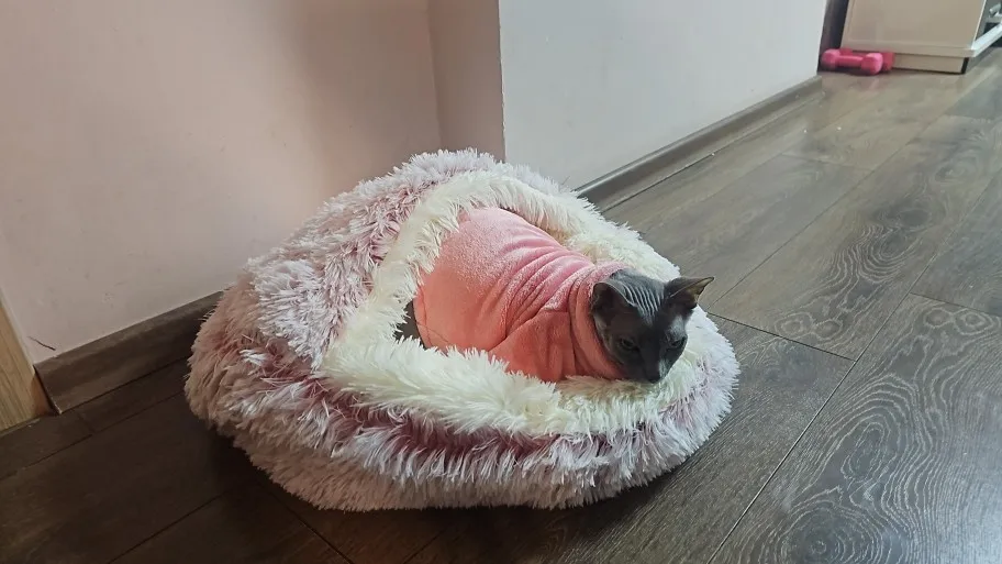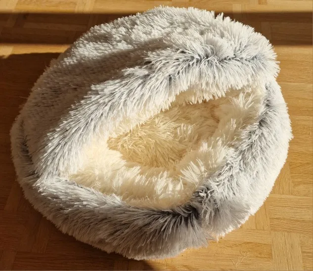 Dieses weiche Plüsch-Katzenbett bietet deiner Katze oder deinem kleinen Hund einen gemütlichen Rückzugsort für entspannte und warme Nächte. Dank des 2-in-1-Designs kann dein Haustier das Bett als geschlossene Höhle für Geborgenheit oder als offene Liegefläche nutzen.